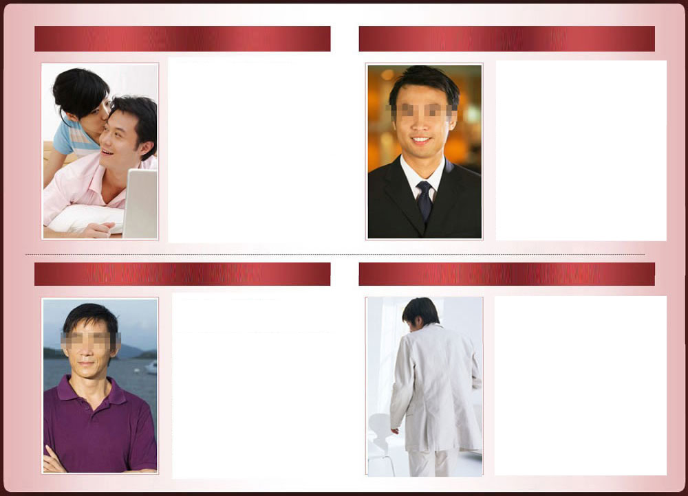 | 赤根草浸膏、雄鹿鞭浸膏、澱粉等 | 男性功能障礙、腎虛、體弱缺少精力、房事易疲勞者、時間極短者 | 全球多家臨床認證,有效率達到98%。 | 純植物完全沒有任何副作用,適合20到60歲年齡之間使用。 | |